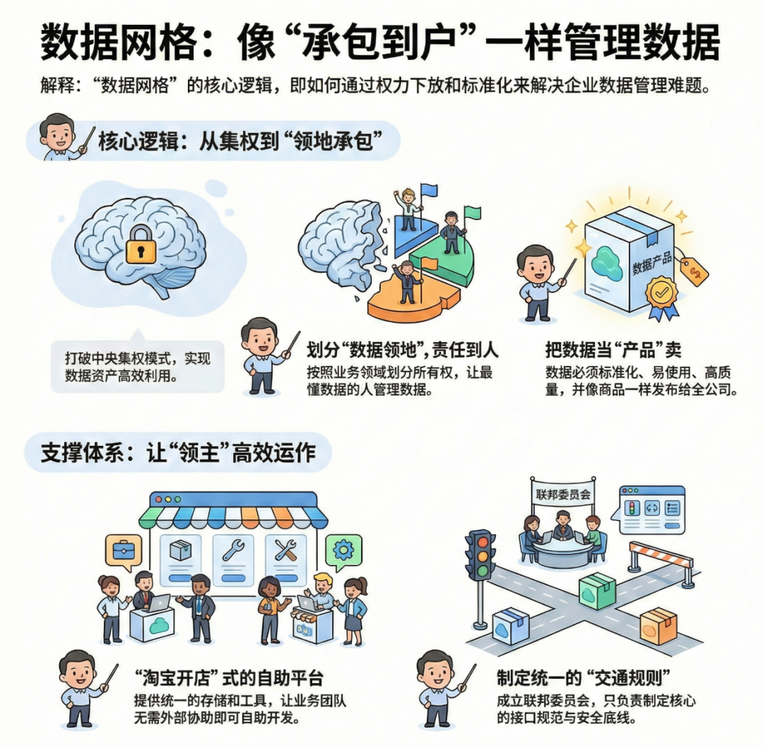 “数据网格”这个词听起来很技术,但它的核心思想,简单到可以用一句话概括:谁产生、谁负责。