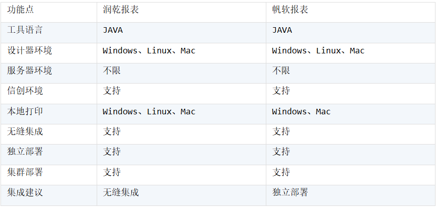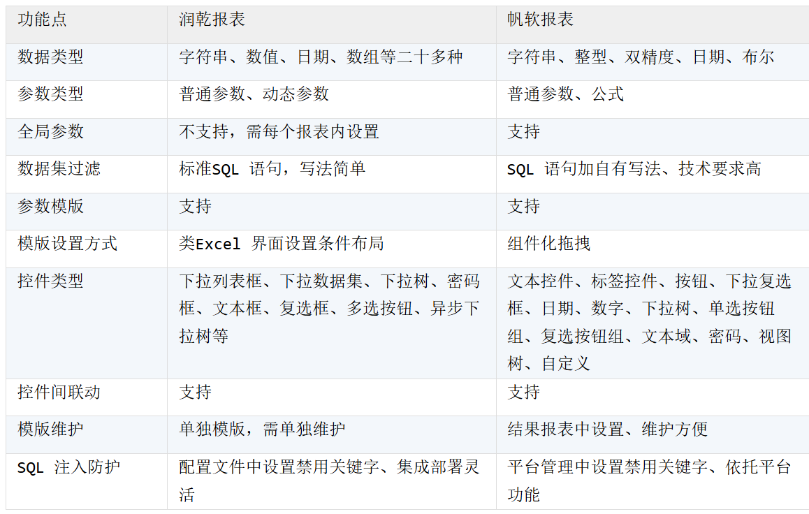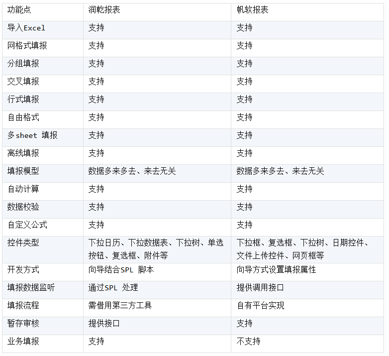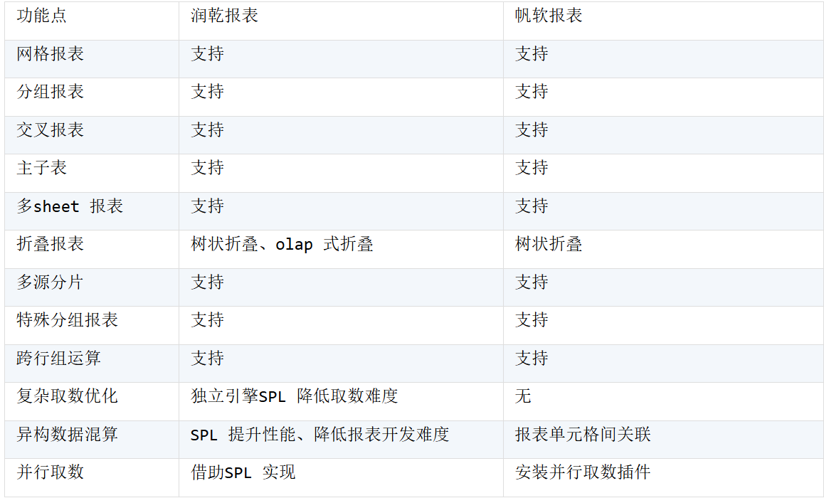 润乾和帆软是仅有两家能流畅处理中国报表复杂报表的产品(其它都是号称),但细节还有不同,这里对很多用户选型时关心的功能点逐一做个对比,为用户产品选型提供参考。