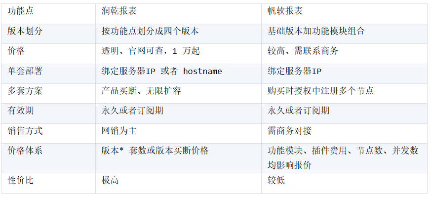 同时也根据并发数(同时访问人数)定价,要结合自身项目,确定终端用户多少人同时访问报表,来确定价格。