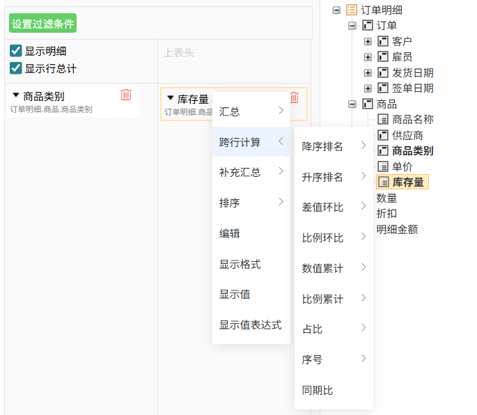 页面端字段拖拽、切片、切换、下钻等都有提供,也可以对汇总数据进行跨行运算: