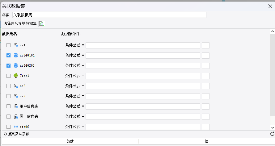 然后新增关联数据集,通过向导方式将两个数据集合并在一起: