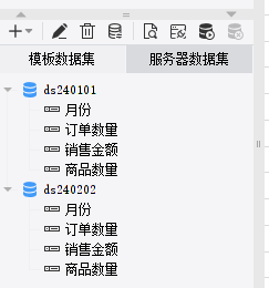 关联数据集:帆软报表中提供了关联数据集功能,先根据不同月份建立多个数据集: