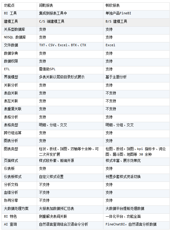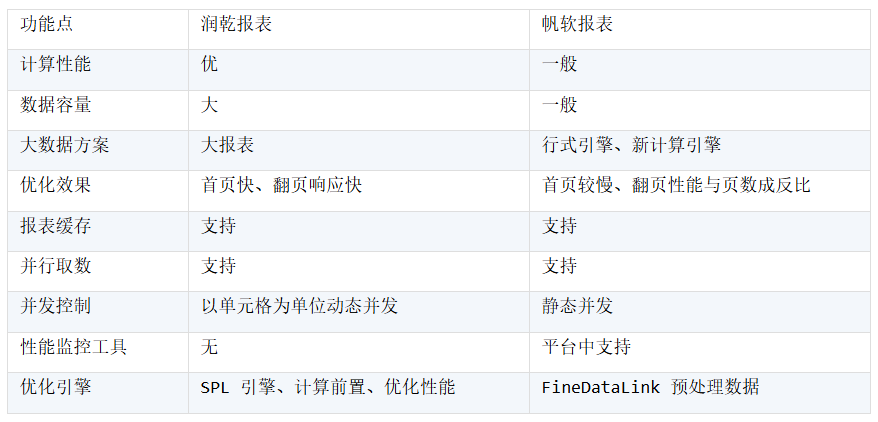 综合而言,两者在报表性能与系统功能上各有侧重:润乾在纯粹的计算性能与资源效率上可能更胜一筹,适合对报表性能要求极高的场景;而帆软则更注重企业级应用中的系统性、可运维性与功能整合,在平台生态和运维支持方面更为全面。