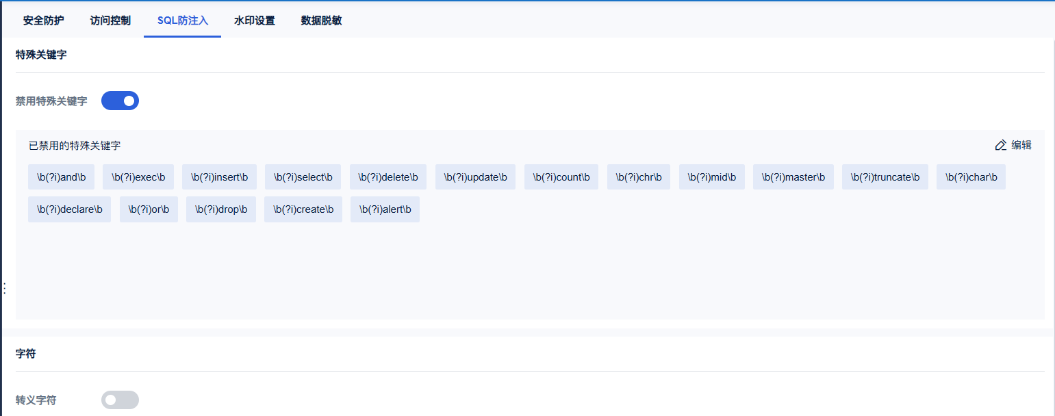 防SQL 注入漏洞,可以在帆软的数据决策系统设置禁用关键字: