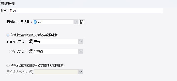 树数据集:帆软报表中有种数据集类型是“树数据集”,可以根据父节点等信息自动分析数据结构,生成带层级的数据集: