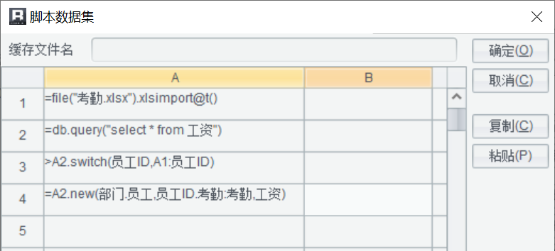 语法更符合开发者的自然思维,使用几个函数就搞定了。再比如要实现两个异构数据源间的关联,同样可以在脚本数据集中实现: