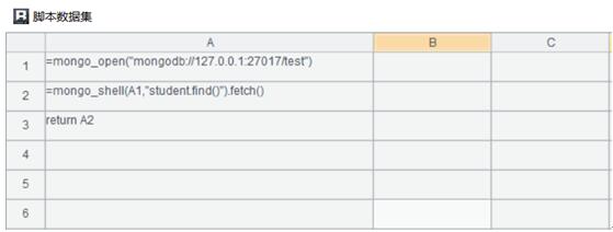 配置完成后,报表中从非关系型数据库中取数,通过脚本数据集实现,如Mongodb: