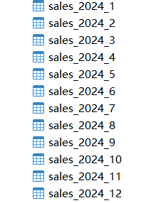 关联数据集:数据库中数据量大时,通常会采用分表或分库方式存储数据,如销售数据每个月存放到一张表中: