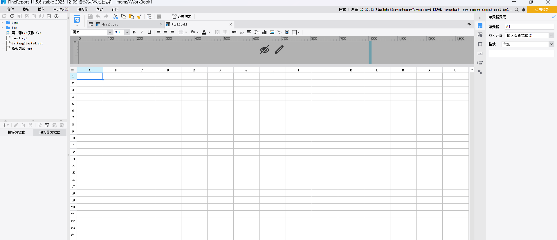 帆软报表新建空白报表,报表模版行数和Excel 中一样,行数不限制,如果设置的报表模版行数较多,就不需要做添加行操作了。右侧区域对不同属性操作做了分类处理,界面布局更简洁。在设计器里可以做用户登录,打通了帆软所有的产品线、文档、官方 demo 等,查看其他资源时很方便。还是通过上述例子,看下实际操作,最终制作模版如下: