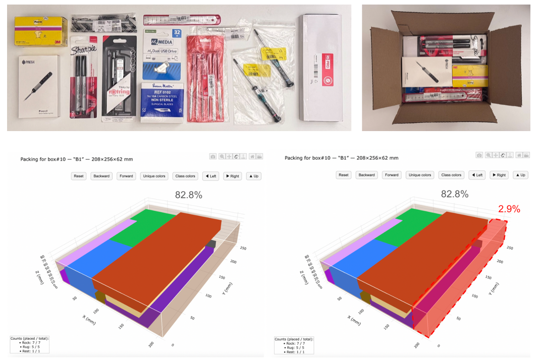 人机协作的新范式:算法并非替代人工,而是成为仓库员工的 “包装副驾驶”—— 通过 3D 可视化界面给出精准的装箱指导,将员工从枯燥、复杂的装箱规划中解放,只需按指导执行,既提升效率,又降低人工培训成本;