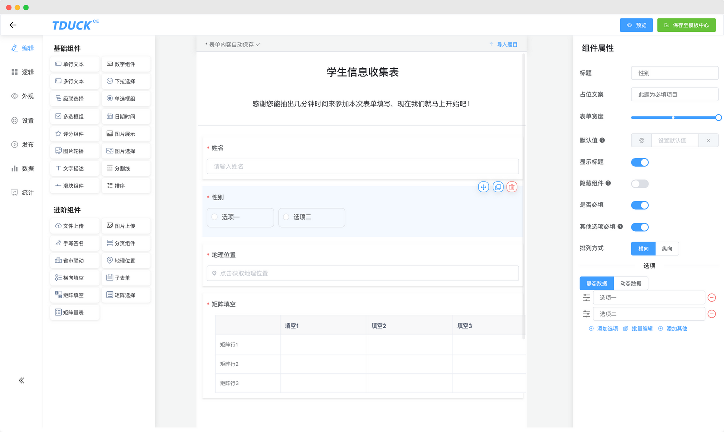 一款基于国内主流技术栈打造的开源企业级表单与数据采集平台,采用无代码 + 可扩展设计,不用复杂开发,业务人员就能快速搭表单,技术团队也能深度二次开发,完美支持企业私有化部署与系统集成。