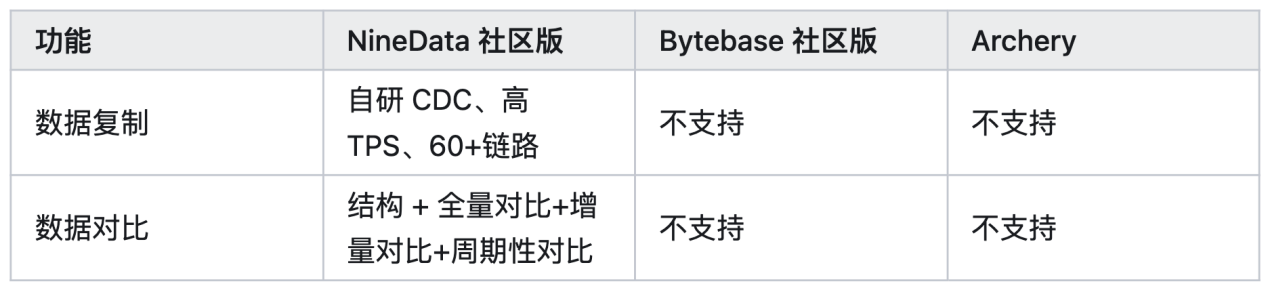 NineData 社区版是玖章算术推出的数据库管理解决方案,包含数据库 DevOps、数据复制、数据库对比三大核心能力。