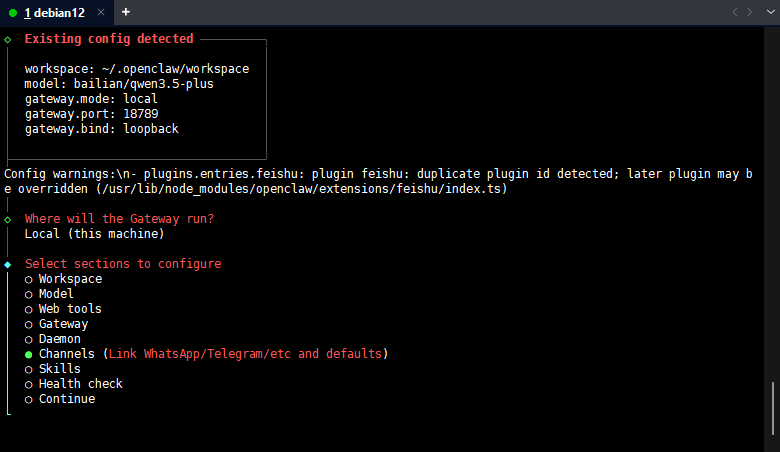 如果你的版本中,没有飞书插件,可以通过下面命令进行安装。 安装飞书插件。
