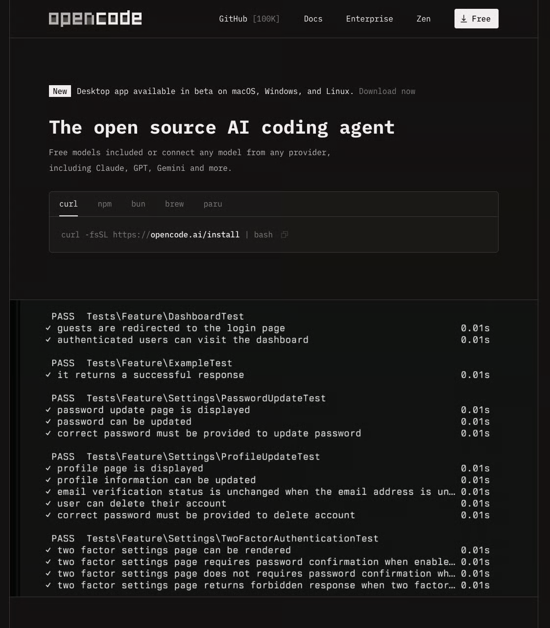 OpenCode是 开源社区 推出的智能编码代理工具,也是行业内对Claude Code闭源模式的开源响应。它支持终端交互、桌面客户端、IDE插件三种使用形式,核心定位是“模型无关”的通用编码代理平台,只提供代码编辑、终端执行、Git管理等标准化工具能力,底层的大模型可由开发者自主选择。