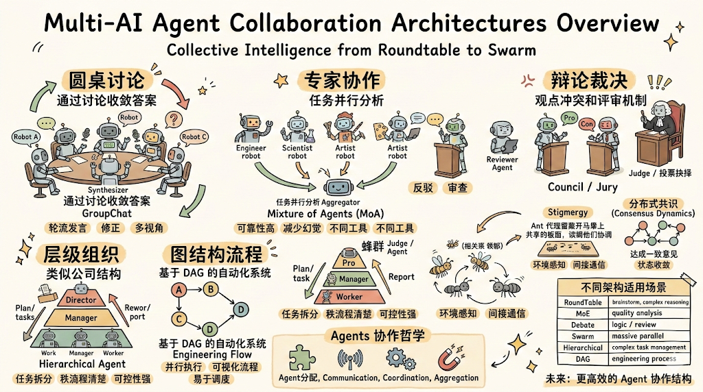 从圆桌会议到蜂群智能,多 Agent 系统其实借鉴了大量 人类组织形式与自然群体行为。