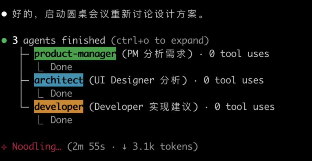 我目前最常用的是 “圆桌会议+蜂群” 工作模式,这种模式提升了 Agents 的执行效率和准确性。