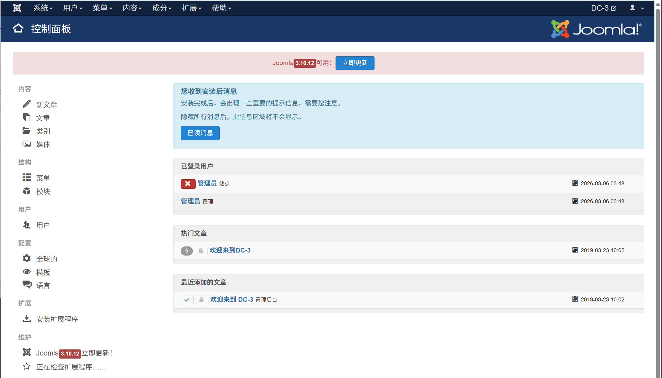 确认为 Joomla CMS,接下来针对 Joomla 进行专项扫描。