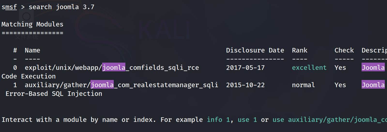 use exploit/unix/webapp/joomla_comfields_sqli_rce