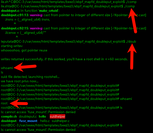 注:直接用脏牛(40611.c)时靶机容易崩溃,因此换用了更稳定的 eBPF 利用方式。