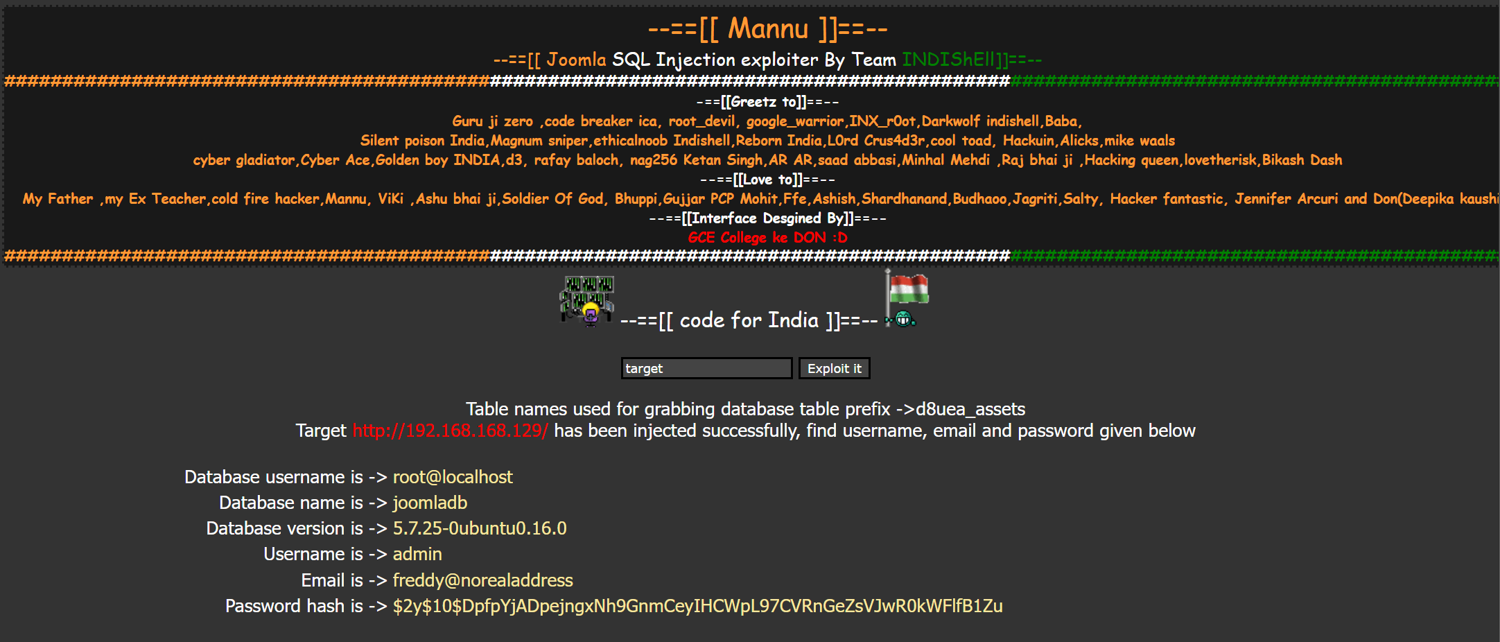 • SQL 注入脚本利用 Joomla 3.7.0 的 com_fields 组件存在注入点,直接拖库
