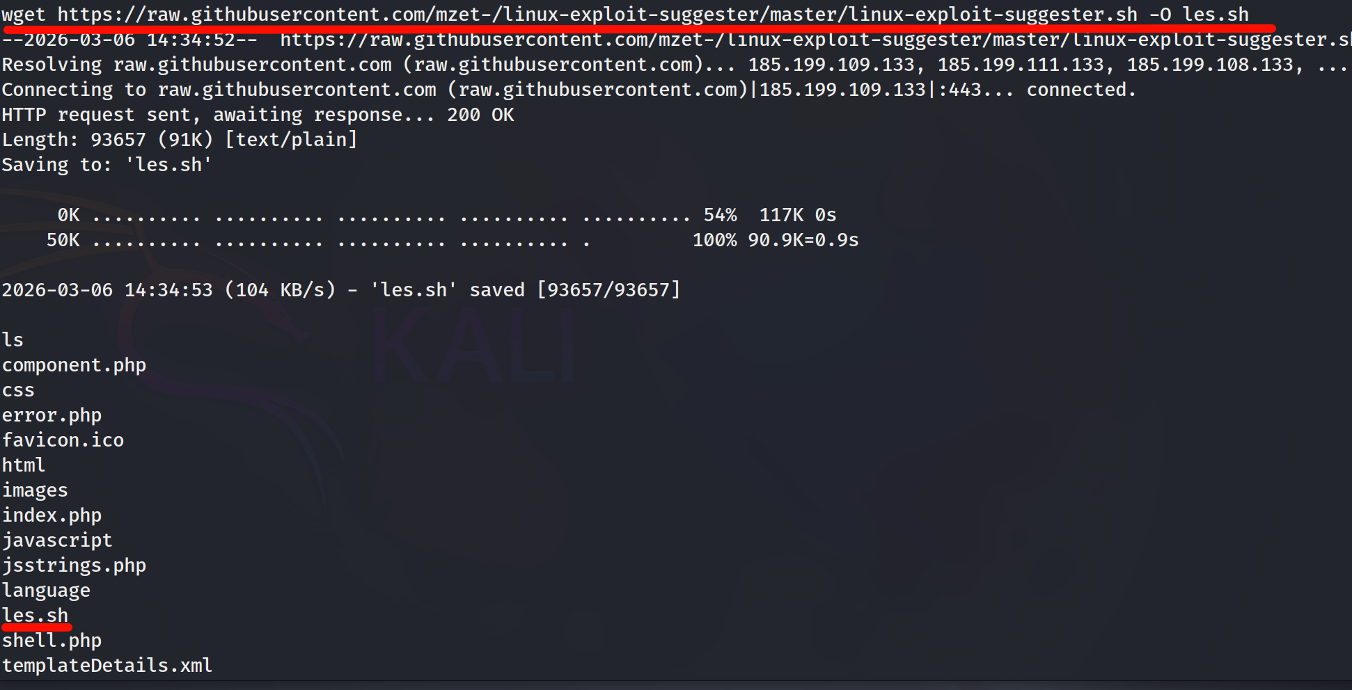 wget https://raw.githubusercontent.com/mzet-/linux-exploit-suggester/master/linux-exploit-suggester.sh -O les.sh
