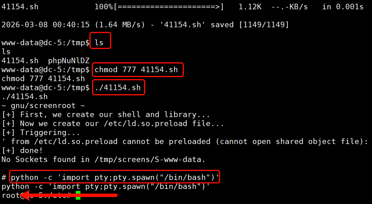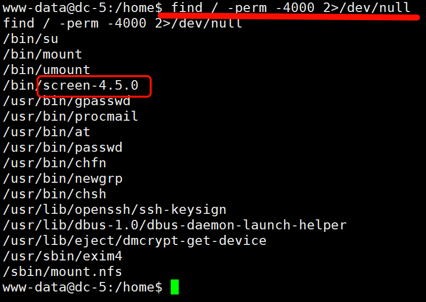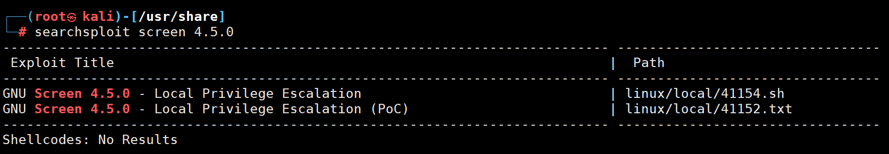 SUID 查找发现 Screen 4.5.0 → 41154.sh 提权