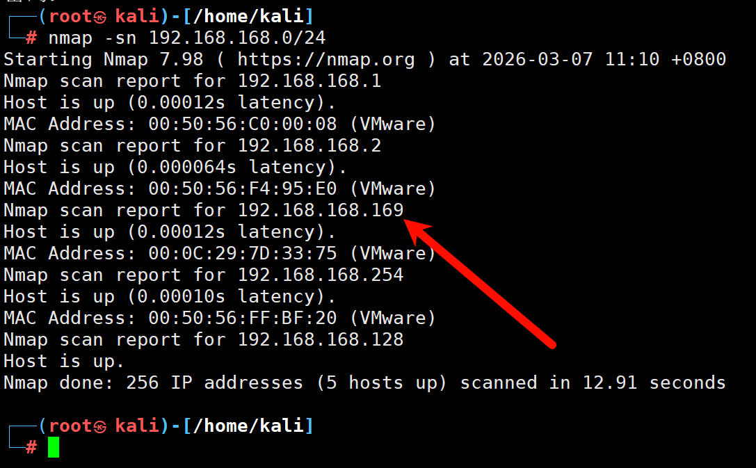-sn是 Ping Scan(主机发现),不进行端口扫描。 作用:只探测目标主机是否存活,不扫描任何端口。 以前的写法是-sP,新版 nmap 改成了-sn,两者效果一样。
