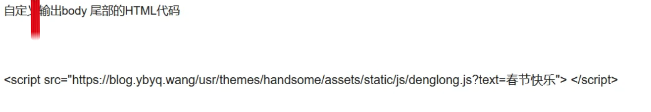 <script src="https://www.example.com/denglong.js?text=春节快乐"> </script>3、handsome主题直接放在自定义尾部即可
