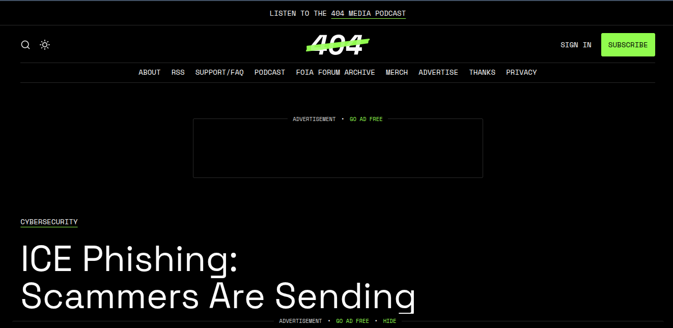网络钓鱼(Phishing)作为网络安全领域最持久且最具破坏性的威胁之一,其演进轨迹始终遵循着“低成本、高回报”的经济学逻辑。从早期的尼日利亚王子诈骗到后来的商业邮件妥协(BEC),攻击手法不断迭代,但其核心始终未变:利用人性的弱点突破技术防线。然而,2024年以来出现的一类新型钓鱼攻击引起了学术界与工业界的高度关注。这类攻击不再隐蔽地模仿银行或科技公司,而是公然冒充具有强制力的政府执法机构——美国移民与海关执法局(ICE)。