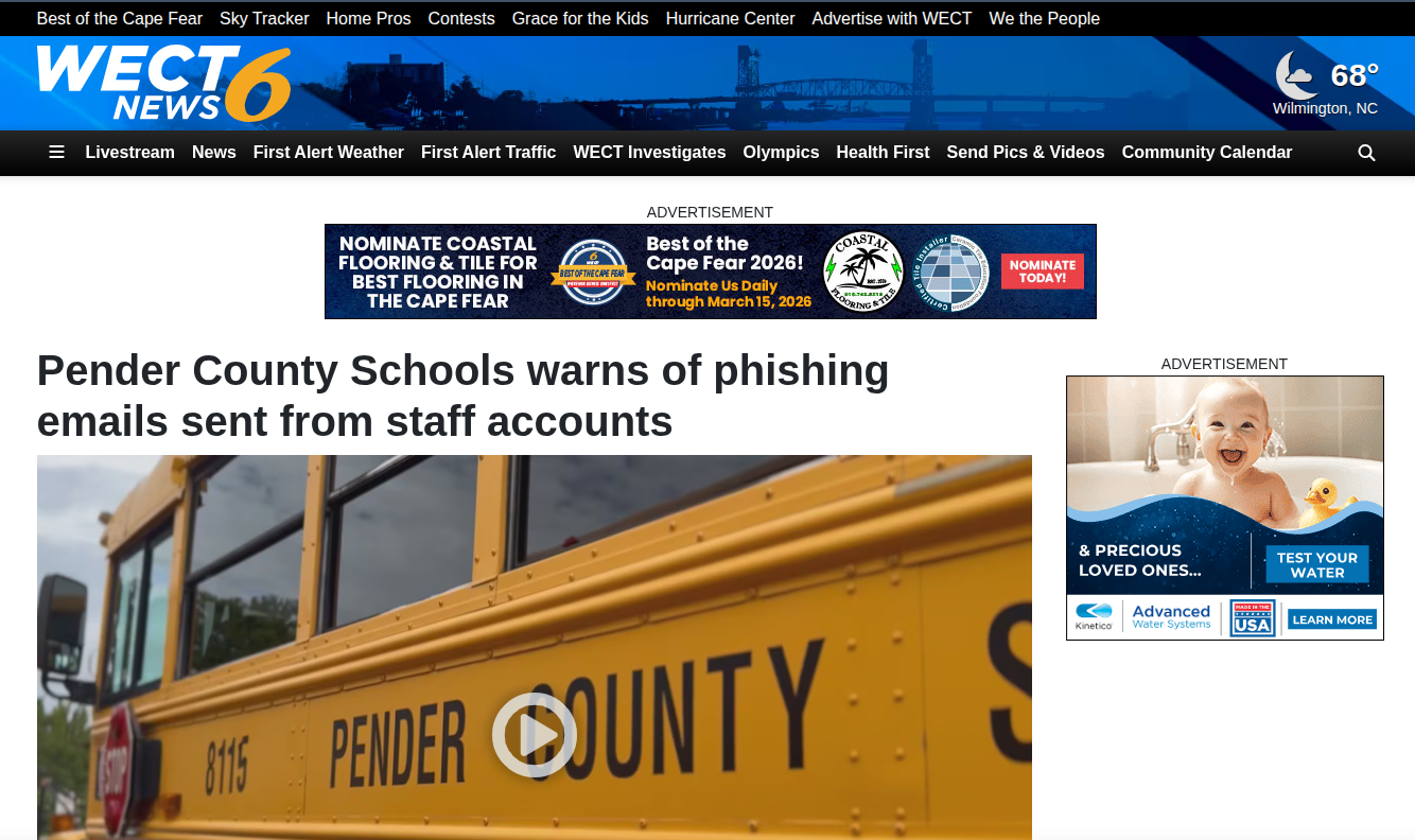 2026年3月5日,北卡罗来纳州彭德县学校系统(Pender County Schools)发布紧急警告,称其部分教职员工的电子邮件账户遭到未经授权的访问,攻击者利用这些被攻陷的账户向其他 staff 成员发送了钓鱼邮件。这一事件并非孤例,而是反映了当前教育行业网络安全面临的系统性危机。与传统的来自外部未知域名的钓鱼攻击不同,此类攻击的最大特征在于其“合法性”伪装:邮件源自真实的学校域名(如@pendercountyschools.net),发件人是受害者认识的同事,发送IP地址位于学校内部网络或受信任的云端办公环境中。这种基于“内部信任”的攻击向量,使得依赖SPF、DKIM等传统域名验证机制以及基于信誉库的垃圾邮件过滤器几乎完全失效。