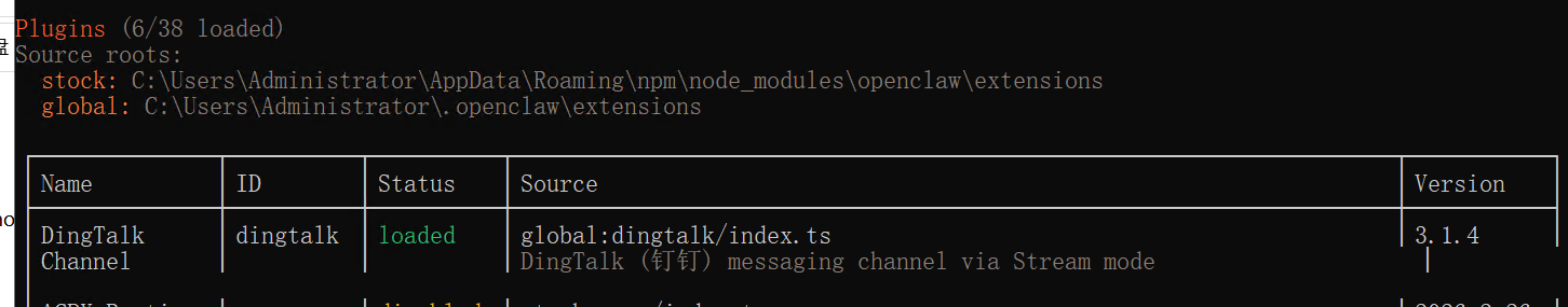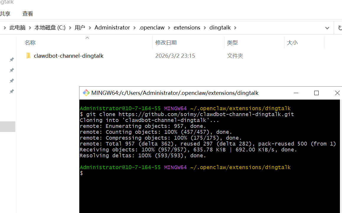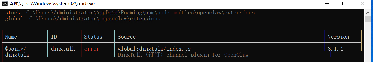 cd C:\Users\“你的用户名”\.openclaw\extensions\clawdbot-channel-dingtalk