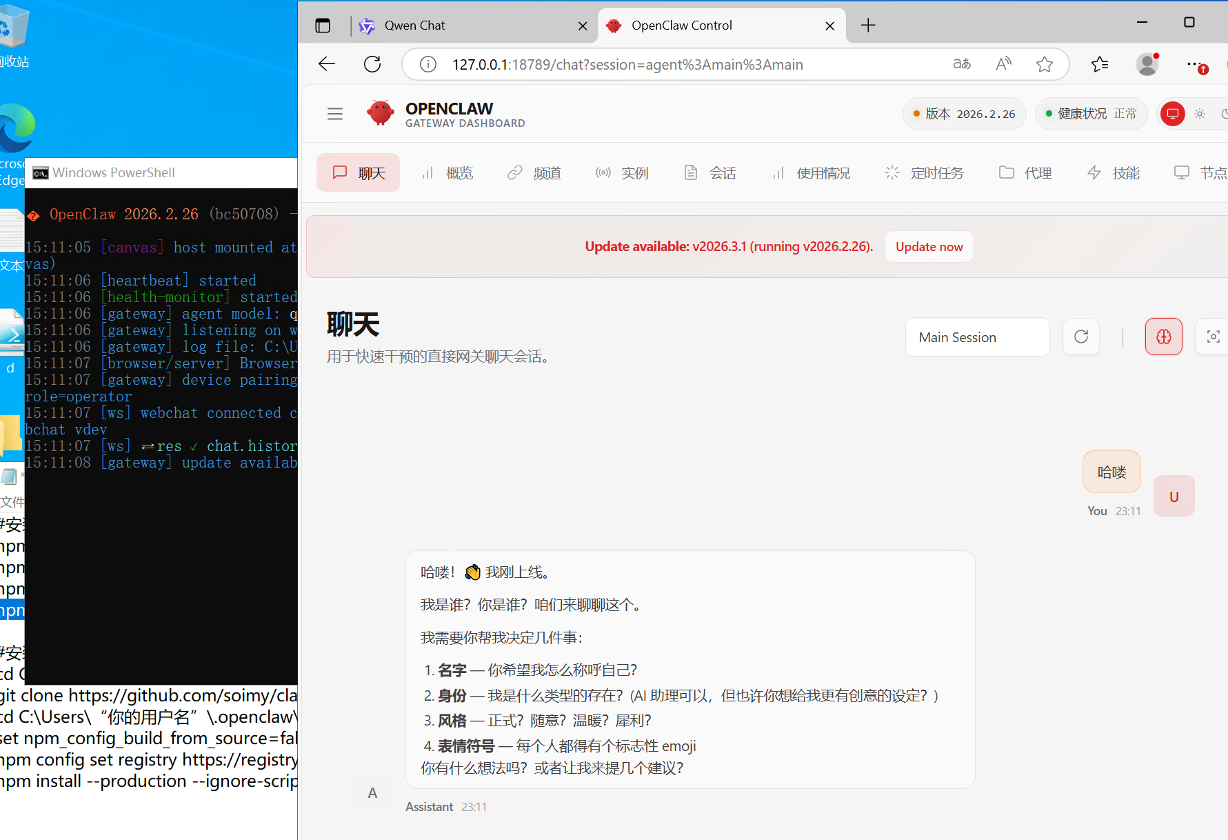 openclaw gateway restart就可以看到成功了。