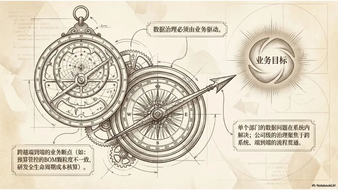 为什么做数据治理?因为数据问题已经严重影响到了业务。单个数据问题、单个部门问题,往往在单个部门内部、单个系统就已经解决了。真正上升到公司级的数据问题,往往都是影响到跨系统、端到端业务流程的,这才是做数据治理的关键价值点。