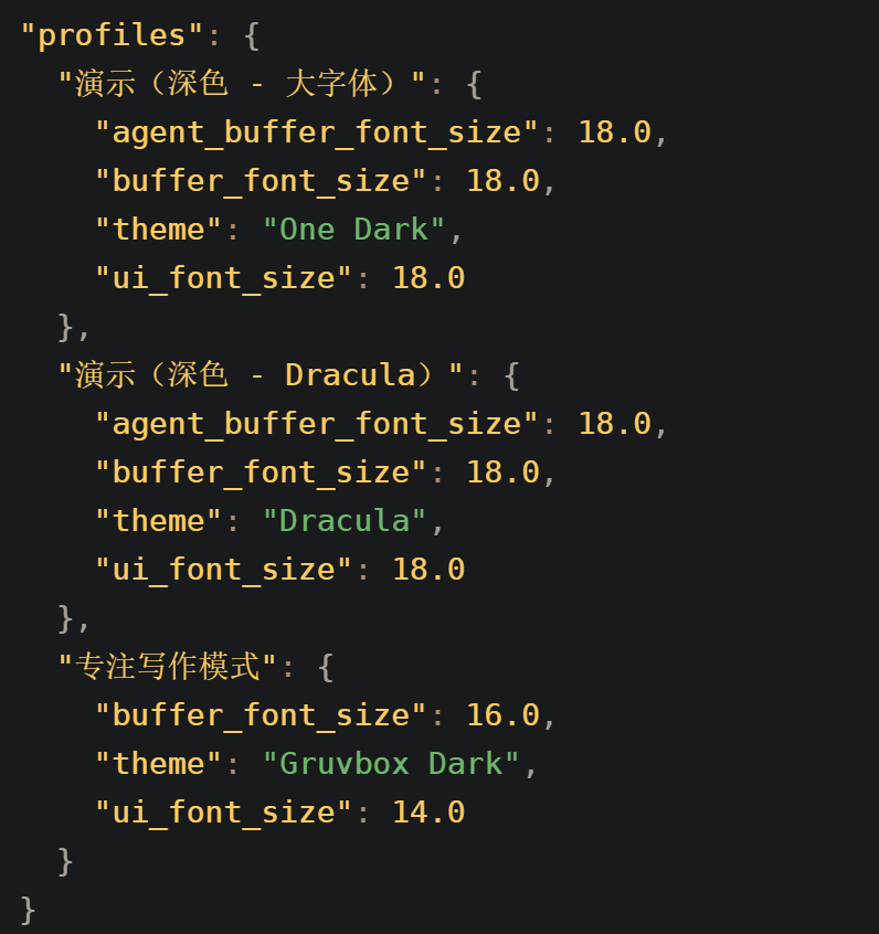 Zed 的配置文件系统让你可以定义多套设置,随时切换!