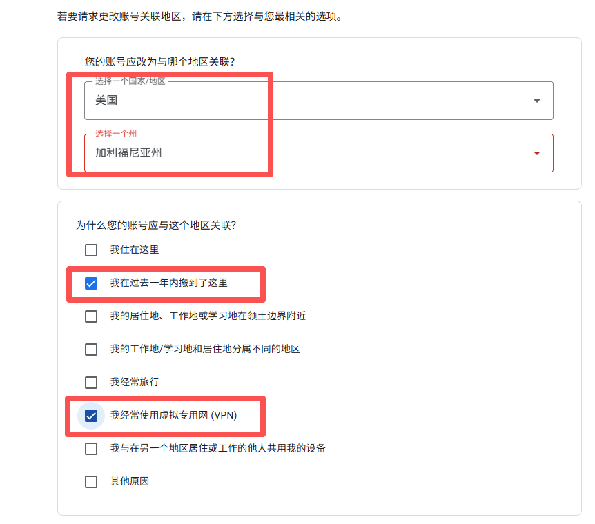 如果不是美国地区,需要切换下,可以到下方地址申请更改: