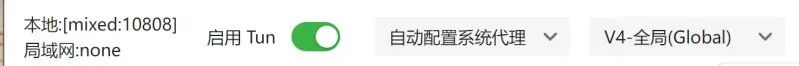 注意:需要开启TUN和全局模式。
