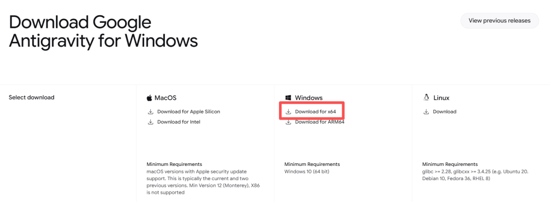 官网地址:https://antigravity.google/download