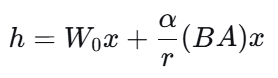 - 前向传播:对于原始权重 W0 的输入 x,输出计算变为: