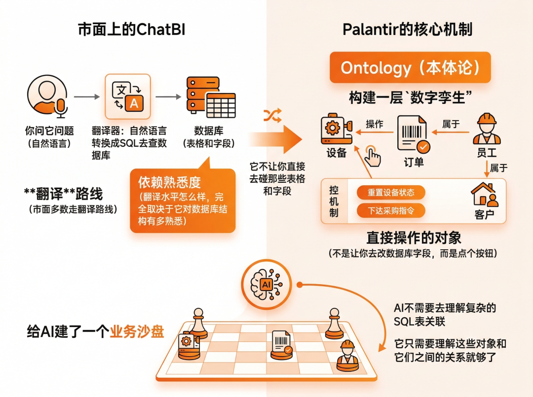 聊Palantir之前,得先搞清楚它和ChatBI本质上的区别。