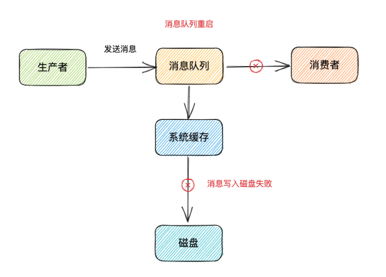 场景2:消息队列接收到生产者发送的消息,将消息持久化到硬盘的过程中也可能会出现消息的丢失