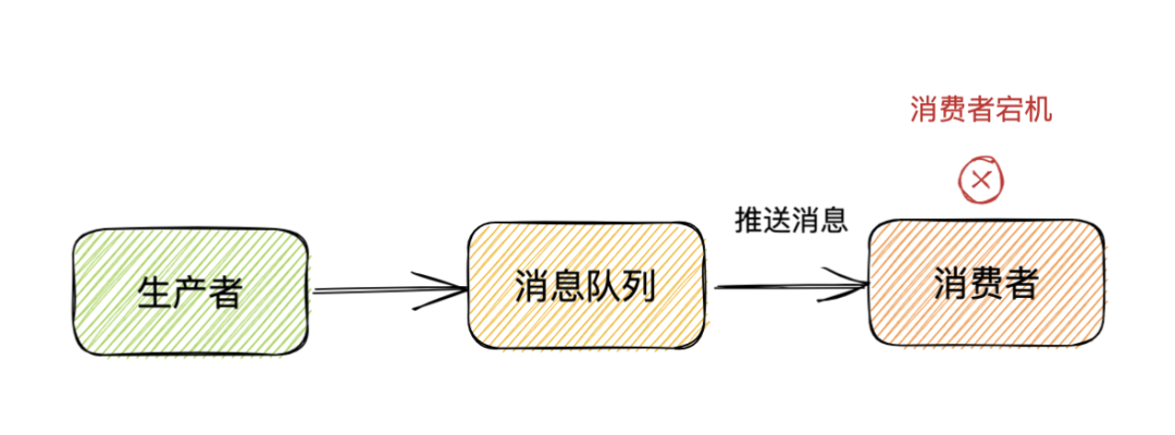 场景3:消费者拉取到消息队列的消息,但是消费者在消费的过程中出现了宕机,导致消息丢失。