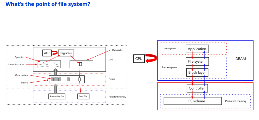 随着NVMe SSD和持久内存等高速介质的普及,传统以CPU为中心的存储I/O栈正成为性能瓶颈。为了绕过内核、减少数据拷贝和上下文切换,业界探索了从用户态文件系统(UserFS)到设备端文件系统(DeviceFS)乃至计算下沉等多种优化路径。然而,当CXL、FPGA等新技术将算力推向存储边缘,AI负载的需求从“管理数据”转向“理解数据”时,我们不禁要问:那个作为软硬件桥梁、默默服务了数十年的文件系统,它的角色是否正在被解构?在以数据为中心的新世界里,文件系统还能幸存吗,抑或将以何种新形态重生?