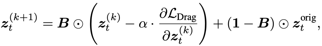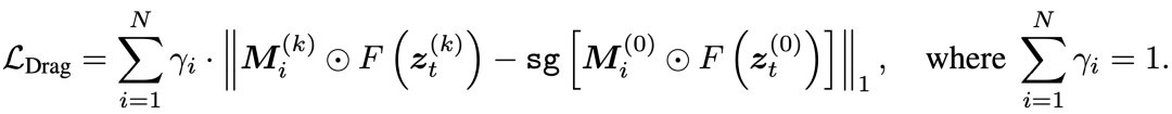整个拖拽过程通过优化噪声化的潜在向量 来实现。优化的目标是让经过仿射变换后的目标区域 的特征,与优化开始前源区域 的特征保持一致。