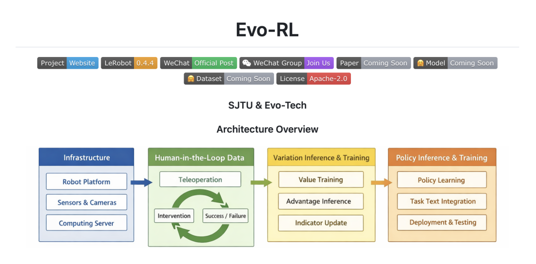 Evo-RL 明确把项目定位为长期开放工程: