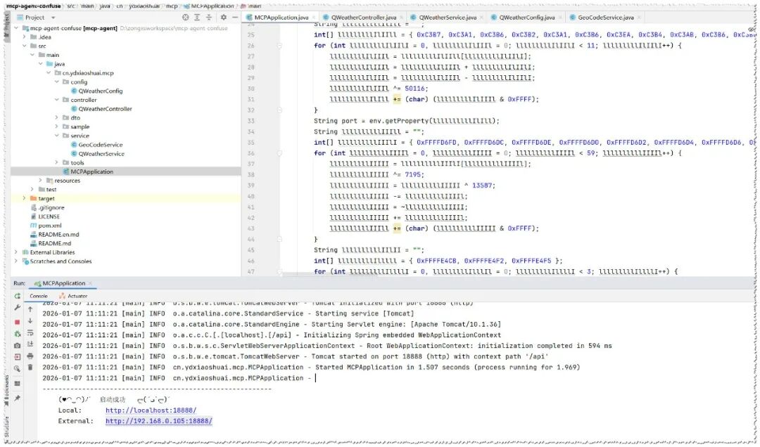 可以看到、源代码已经混淆。且不影响项目正常启动~