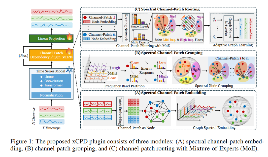 TL; DR:We propose xCPD, a lightweight plugin that models channel-patch dependencies via spectral decomposition and routing, enabling accurate and generalizable forecasting with minimal overhead.