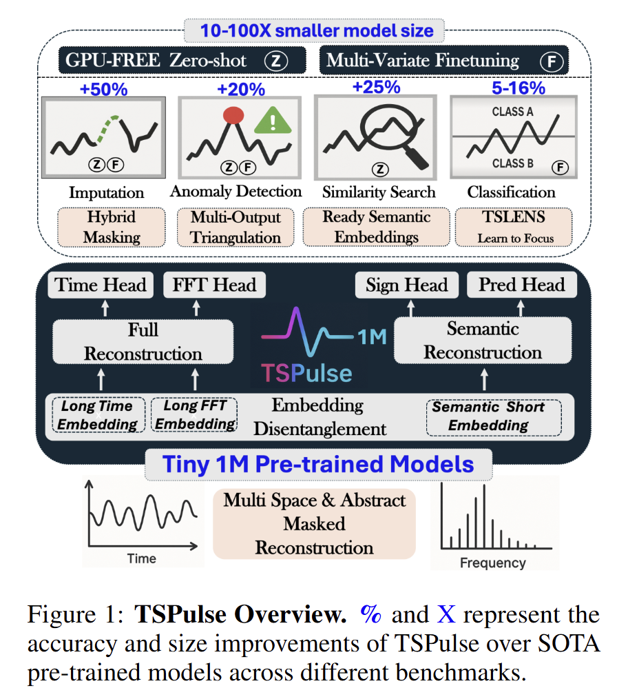 TL; DR:Ultra-lightweight time-series pre-trained models (1M parameters) with disentangled embeddings across spaces and abstraction levels, delivering state-of-the-art performance in anomaly detection, classification, imputation, and similarity search.