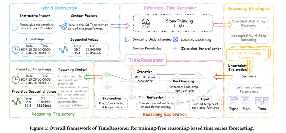 摘要:时间序列预测(TSF)传统上依赖于快速思维范式,这种范式将历史观测直接映射到未来的连续值序列。尽管这些方法很有效,但它们往往将预测视为模式匹配问题,并且容易忽视对时间动态和上下文因素的显式推理,而这些对于建模现实场景中的长程依赖和非平稳行为至关重要。最近的慢思维大型语言模型(LLMs),如OpenAI o1和DeepSeek-R1,展现出强大的推理时多步推理能力。这就引出了一个根本性问题:即使没有特定任务的训练,慢思维LLMs能否对时间动态进行推理以支持准确的TSF?为了研究这个问题,本文提出了TimeReasoner,这是一项系统性的实证研究,它将TSF重新表述为完全在推理时执行的条件推理过程。TimeReasoner整合了包含任务指令、时间戳、序列值和可选上下文特征的混合指令,并通过思维链提示和基于滚动的推理策略,在预训练的慢思维LLMs中诱导多步时间推理。在不同的TSF基准上进行的大量实验表明,慢思维LLMs始终优于先前的基线模型,或者实现了具有竞争力的无训练预测性能。除了准确性之外,本文还分析了不同的推理时推理策略如何影响预测行为,强调了慢思维范式在TSF中的潜力和局限性。