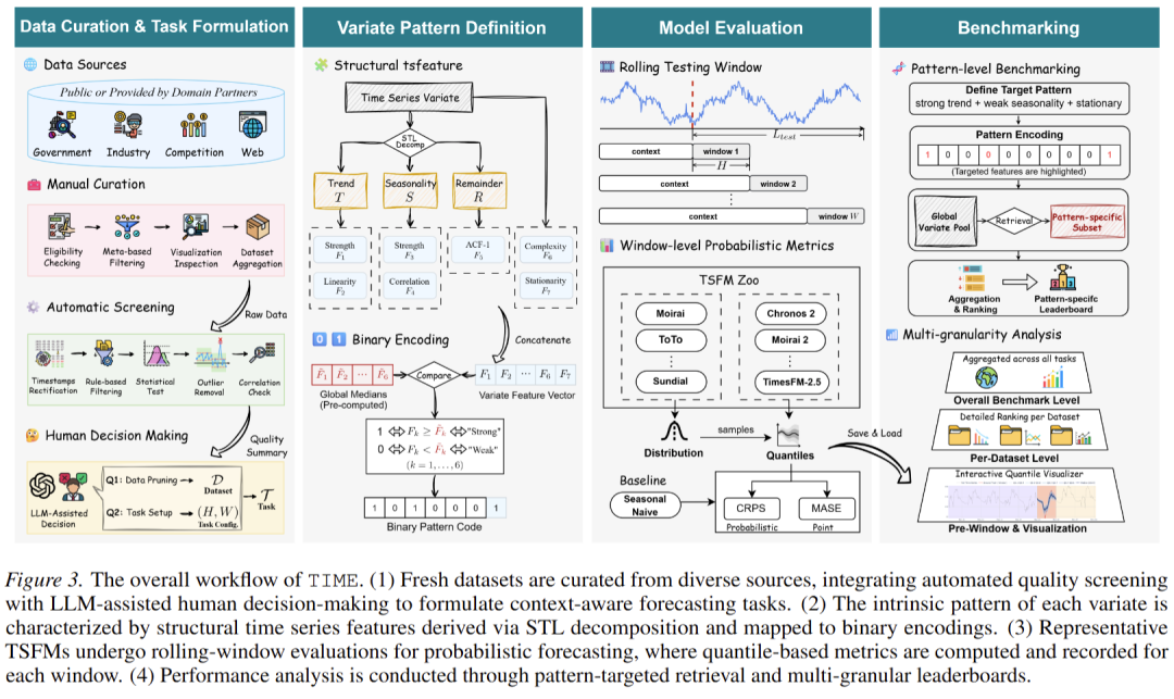 为了解决上述问题,作者重新设计了Benchmark的整个生命周期,提出了 TIME 的核心工作流(如图3所示)。整个过程主要包含四个紧密相连的环节: